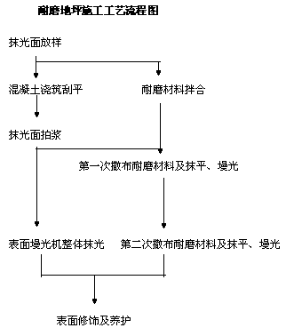 (1)耐磨材料撒布的時機隨氣候、溫度、混凝土配合比等因素而變化。撒布過早會使耐磨材料沉入混凝土中而失去效果;撒布太晚混凝土已凝固,會失去粘結力,使耐磨材料無法與其結合而造成剝離。判別耐磨材料撒布時間的方法是腳踩其上,約下沉5mm時,即可開始第一次撒布施工。