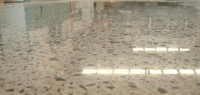 實質上是反映了地面平整度的問題。特別是當面層有腳踩的腳印時,如不及時處理,勢必在腳印處有輕微下沉。另外,如果腳踩在較軟的面層上,會使腳印處的石子沉下去,水泥漿上部增多。當磨光時,腳印處的輕微下沉,使磨光受到影響。所以,看上去表面的石子不夠均勻,清晰不夠。