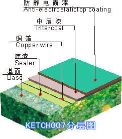③防靜電底漆:采用滲透性及附著力特強防靜電環氧底漆滾涂一道,增強表面附著力;